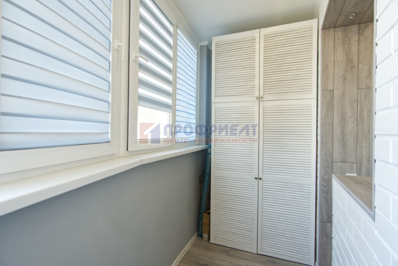 Кухня 12 м² правильной формы, остаётся гарнитур с техникой, есть сплит-система. Изюминка квартиры — отдельный выход на большую открытую террасу над коммерческими помещениями: можно организовать зону отдыха или поставить бассейн.