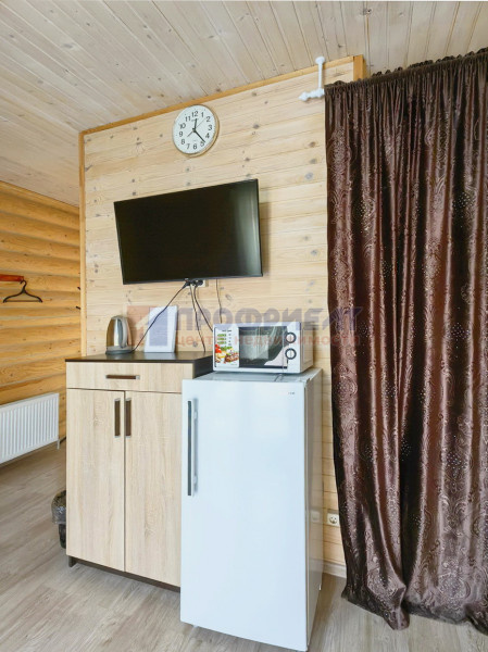 Номера полностью укомплектованы и готовы к дальнейшей эксплуатации без дополнительных вложений. В каждом предусмотрены мебель, текстиль и необходимая посуда, установлены кондиционеры, холодильники, телевизоры, микроволновые печи и электрические чайники. Отопление реализовано через радиаторы как в жилых комнатах, так и в санузлах, что позволяет комфортно эксплуатировать объект в круглогодичном режиме. Внутренняя отделка выполнена в спокойной, универсальной стилистике: стены обшиты вагонкой, на полу ламинат, в санузлах практичное покрытие, установлены душевые кабины и полотенцесушители.